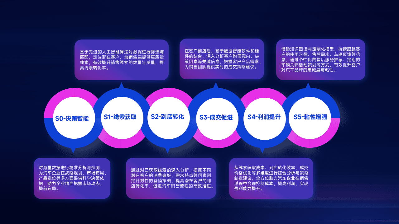 通过拓宽潜在客户来源、、优化线索分配并提高到店转化率,,,以增强销售效率。。。同时,,,利用线索数据不断优化分析模型,,有效提升转化率,,,扩大营销影响力。。。